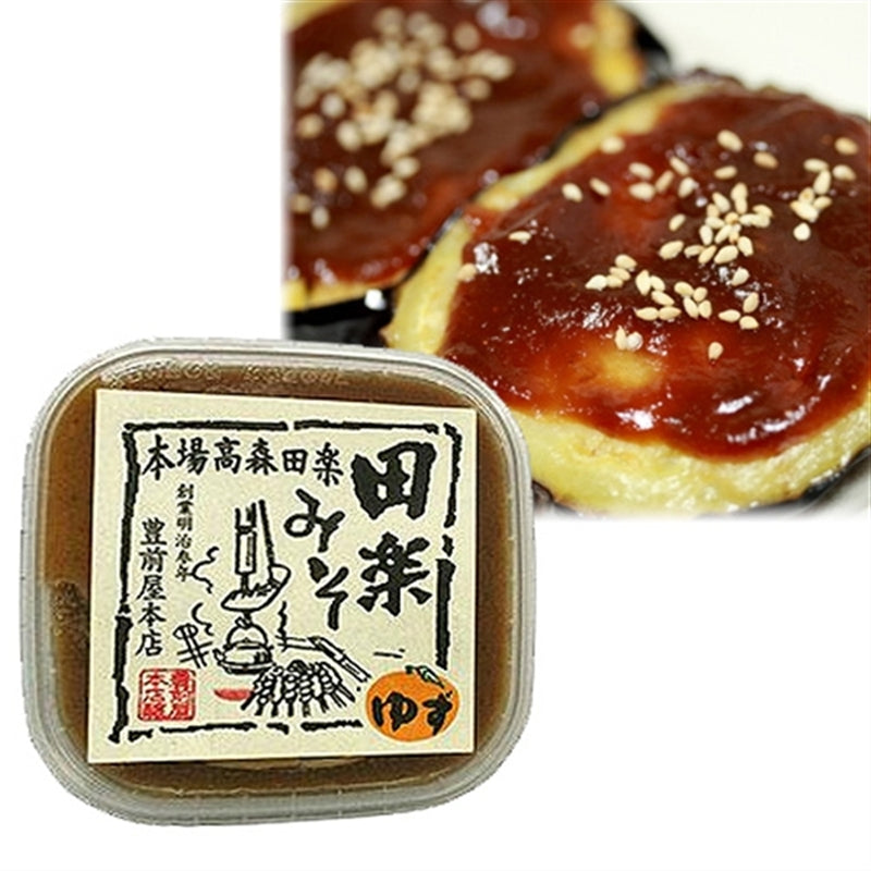 「本場高森田楽の田楽みそ」田楽は高森町の郷土料理。地元特産のいもを主にやまめ、山菜を織り混ぜながら、独特の山椒味噌、ゆず味噌で味付けし、昔ながらの囲炉裏を囲んで炭火で素朴な郷土料理です。